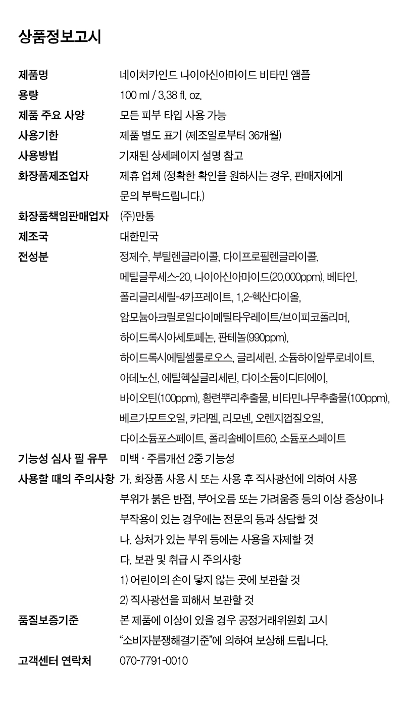 사용후기00000 구매하기 구매수량 옵션 선택 [BEST] 화이트닝 비타민C앰플(3+1행사) (70%할인) 화이트닝 비타민C앰플(1+1행사) (62%할인) 나이아신아마이드 비타민 앰플 단품 총 상품 금액 0 원 장바구니 바로 구매